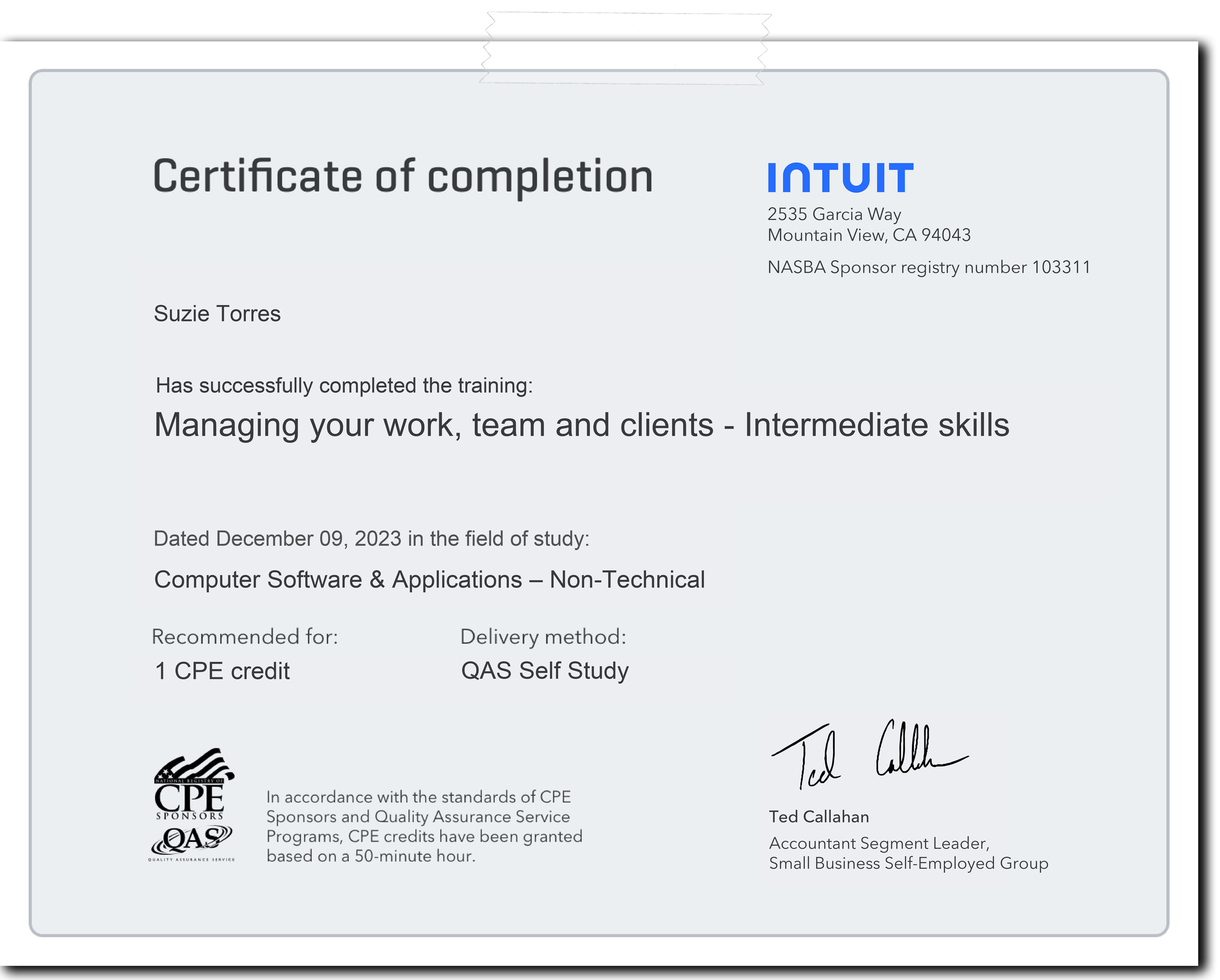 I am a Certified QuickBooks ProAdvisor, working toward certification in Advanced and Payroll.